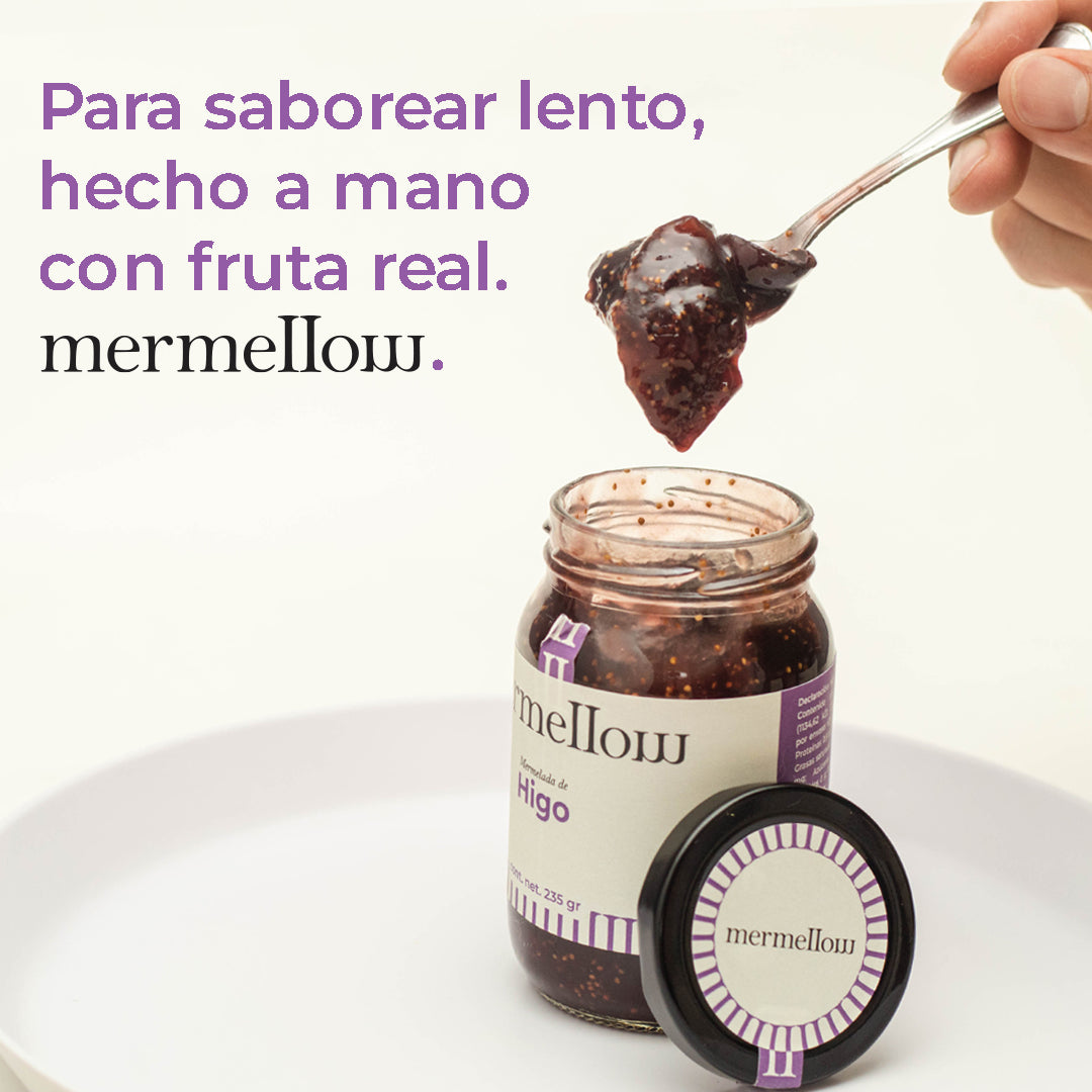 Cada frasco es el resultado de una receta tradicional y un proceso 100% artesanal. Usamos higos maduros para cocinados lentamente en pequeñas cantidades y así conservar su sabor auténtico, su color natural y su textura con trozos de fruta.
